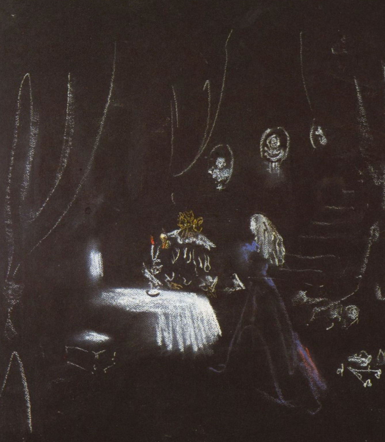 I am small. My house is a castle where everything towers over me. This doesn’t scare me. My favorite room in the house is a large sitting area that looks over the courtyard. We call it The Magic Room. The walls are painted with dark, mysterious looking symbols. Hanging from the ceiling are two heavy set chandeliers where candles can be lit. The couches are plush red velvet and a grand piano sits in the back corner. Above the piano, visible from the entire room, is a balcony that looks over the sitting area. Often I walk to the door of the room to sneak a peek up to the loft, hoping to see the silhouette my sister claimed to have seen lurking in the shadows. I never do.